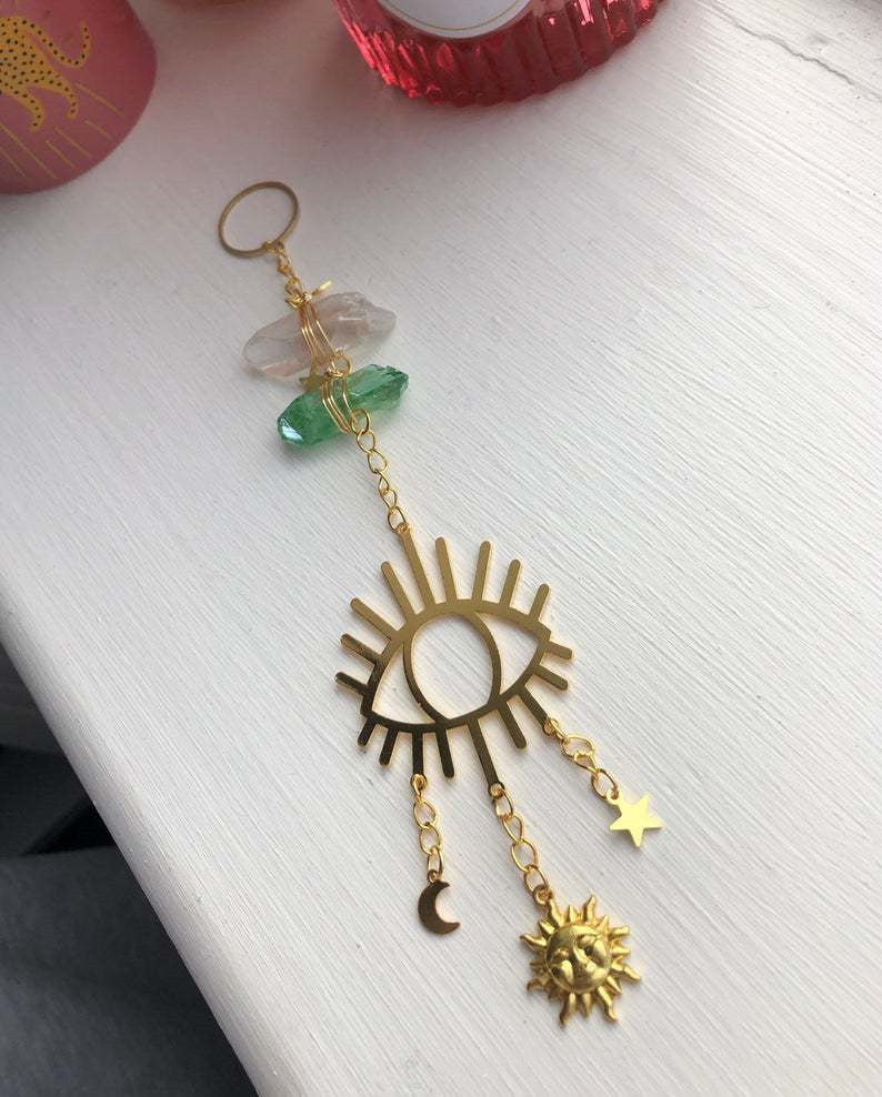 Moon semicircle, agate crystal wind chime, hollow moon, square frame model,